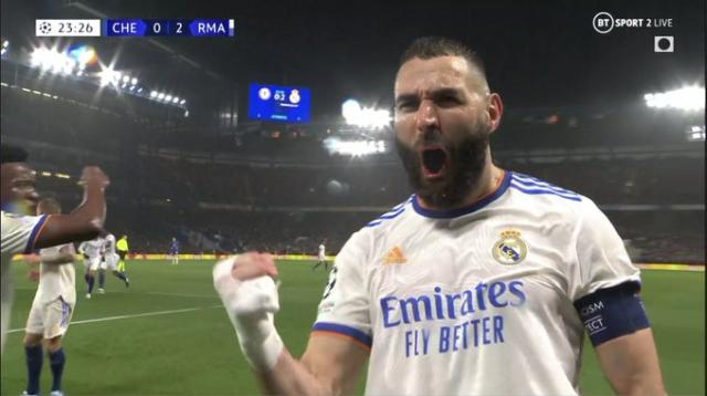 سجل الآن النجم الفرنسي "كريم بنزيما" قائد ريال مدريد هدفين في شباك تشيلسي الإنجليزي في ذهاب ربع نهائي بطولة دوري أبطال أوروبا.