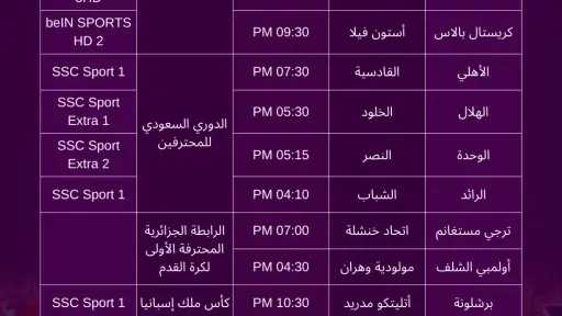 مواعيد مباريات اليوم.. الهلال والنصر وروما في صراع قوي على الصدارة